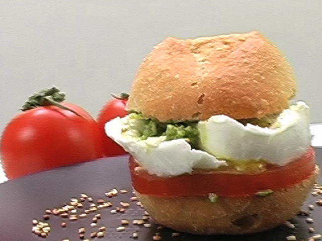 Булочка с песто, помидорами и сыром