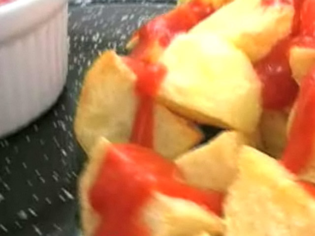Рецепт картофеля с томатным соусом.Состав: картофель — 5 клубней;томатный соус, мука, соль, масло, уксус, табаско, перец.