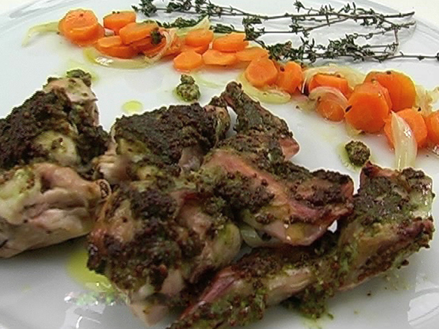 Вкус крольчатины особенно проявляется при правильном приготовлении.Состав:кролик — 1/2 тушки;горчица «Дижон», зернистая горчица, горчица с эстрагоном — по 50 гр;белое вино — 1 стакан;тимьян — 5 веточек;морковь — 2 штуки;лук — 2 штуки;соль, оливковое масло — по вкусу.