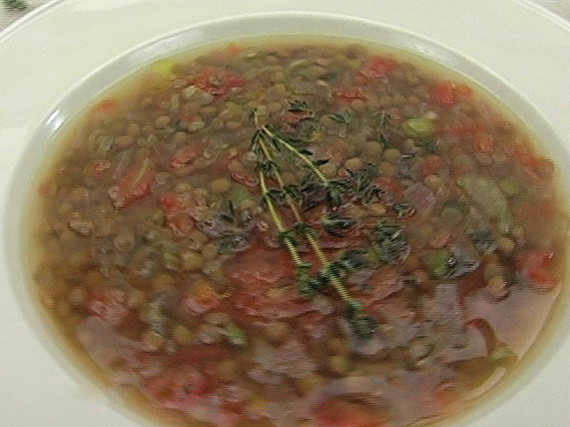 Разнообразие в меню привнесет чечевичный суп.Состав:чечевица — 200 гр;вода — 800 гр;лук — 1 штука;чеснок — 1 стебель;сельдерей — 1/2 стебля;томаты — 2 штуки;соль, перец, базилик, тимьян, орегано — по вкусу.